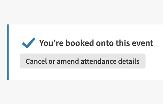 • You can use the button on this event listing page at any point to manage your booking to amend or add guests, contact the event organiser or cancel your whole booking.